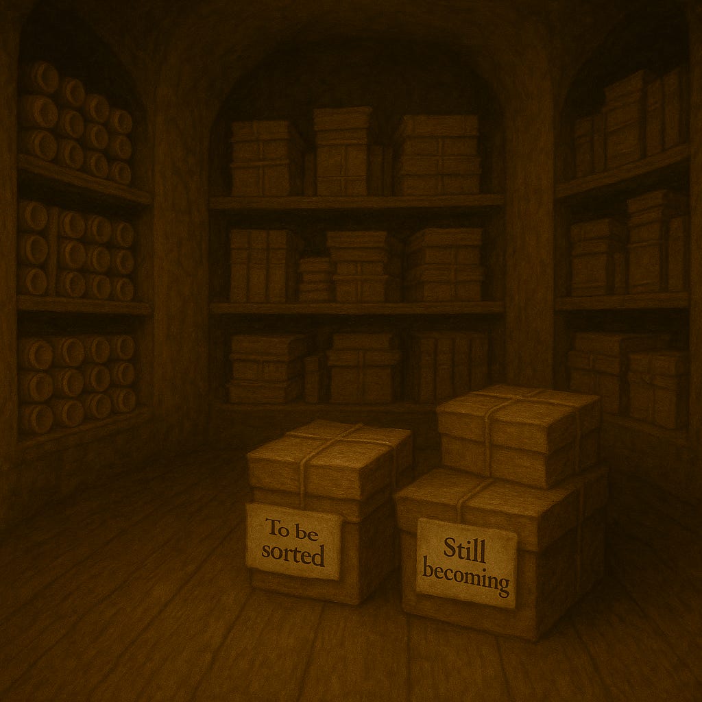 Bramble looked down. The floor beneath him was not stone, but paper: a hundred overlapping pages, some familiar, some in languages no longer spoken. He could see phrases from old sermons. Lines from letters he never sent. Scribbled confessions from long nights in too many chapels. All beneath his boots. All kept.
